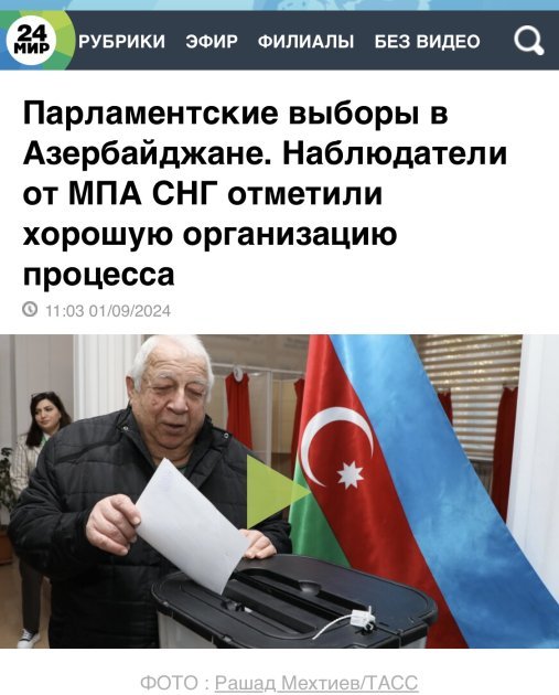 Agentliyin digər həmsöhbəti, MDB PA-nın Baş katibi Dmitri Kobitski parlament seçkilərinin monitorinqinin ilkin nəticələri ilə bağlı fikirlərini bölüşərək qeyd edib ki, müşahidəçilərdən heç biri səsvermənin təşkilinə dair hər hansı nöqsan qeydə almayıb. Onun sözlərinə görə, seçki məntəqələri və məntəqə seçki komissiyaları yaxşı hazırlanıb, yerli müşahidəçilərdən də heç bir şikayət daxil olmayıb.